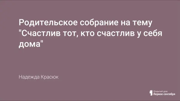 Родительское собрание проводилось для родителей учащихся 10-го класса по результатам проведения классного часа, посвященного Году Семьи. Родительское собрание построено на обсуждении результатов анкетирования учащихся и проводится в форме дискуссии. На этом собрании родителям задается домашнее задание, которое призвано побудить родителей к доверительному разговору со своими детьми на тему семейных взаимоотношений. Потом у детей можно спросить о том, как родители выполнили домашнее задание.