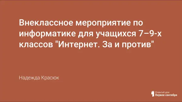 Внеклассное мероприятие проводится с целью знакомства с историей развития Интернета, сервисами Интернета и обсуждения основных проблем использования сети Интернет в форме дидактической игры.