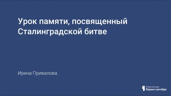 Задача учителя состоит в том, чтобы новое поколение знало и помнило все события прошлого, гордилось своими предками, Героями Великой Отечественной войны. Урок памяти, посвящённый Сталинградской битве, это часть задуманного проекта о городах-героях. Каждый из них – это путь к Великой Победе.
