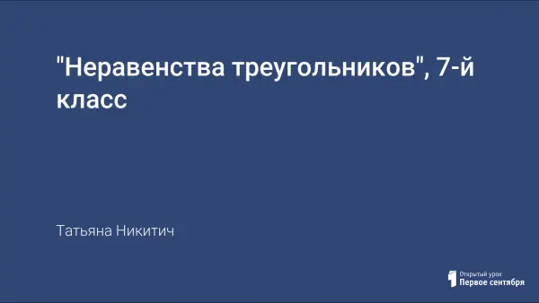 Цель урока – рассмотреть теорему о неравенстве треугольника, показать ее применение при решении задач. Урок разработан в соответствии с технологией проблемного обучения. Работа проводится по группам. С помощью подводящего диалога учащиеся выходят из проблемной ситуации, представленной противоречиями между тремя положениями.