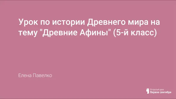 Сценарий урока по истории Древнего мира. С помощью наглядных средств: мультимедийной презентации, атласа и учебника по истории Древнего мира, учащиеся 5-го класса изучают географические и общественные особенности развития афинского полиса, знакомятся с терминами: полис, демос, архонты, ареопаг, сравнивают греческий и финикийский алфавиты, анализируют особенности развития афинского полиса. Урок является частью темы "Зарождение Древнегреческой цивилизации. Архаический период в истории Древней Греции" в рамках раздела "Цивилизация Древней Греции". Урок снабжён пособием – мультимедиа презентация. Основной метод урока – метод диалога, т.е. беседа как метод повторения, разъяснения и проверки знаний.