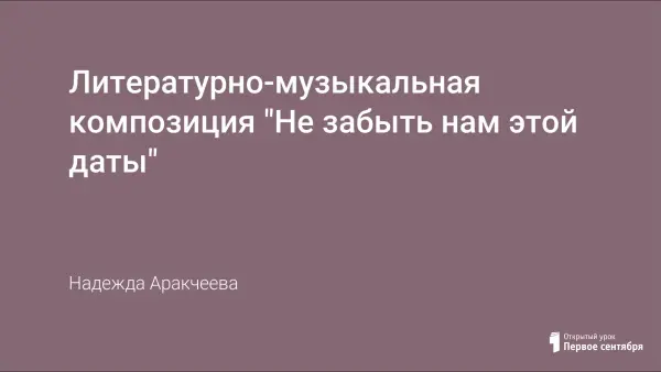 Литературно-музыкальная композиция проводится для детей 4–6-x классов при встрече с ветеранами. Патриотическое воспитание должно строиться на встречах с ветеранами и реальных историй из их жизни, через поисковую работу, составление летописи и фотоальбомов об их жизни. Всё это способствует воспитанию у детей чувства патриотизма, чувства уважения к людям старшего поколения, любви Родине.