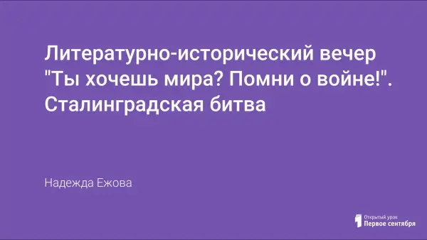 Литературно-исторический вечер помогает расширить представления учащихся о Сталинградской битве, о мужестве старшего поколения; воспитывает патриотизм, гражданственность, чувство долга перед Родиной.