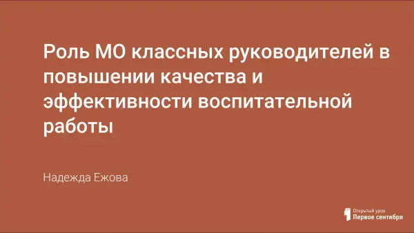 В работе показана роль МО классных руководителей в повышении качества и эффективности воспитательной работы.