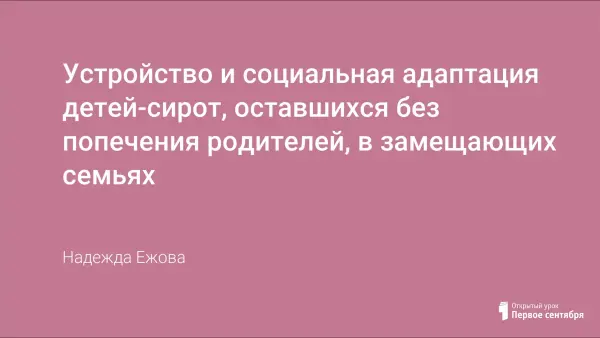 Альтернативной формой воспитания детей-сирот является замещающая семья. Замещающая семья в отношении приемного ребенка выполняет многообразные функции и призвана решать задачи восполнения недостатка его эмоциональной, сенсорной, социальной информации, ликвидации его отставания в развитии от сверстников. В статье показана работа школы по защите прав и интересов детей-сирот и детей, оставшихся без попечения родителей.