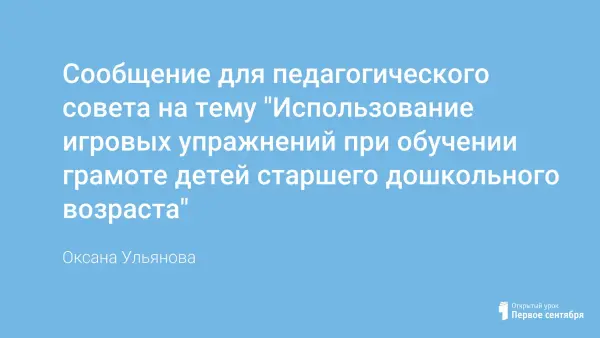 Сообщение для педагогического совета на тему "Использование игровых упражнений при обучении грамоте детей старшего дошкольного возраста"