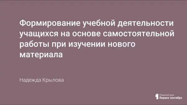 Учебная деятельность базируется на мотивации учения, постановке цели учеником, определении им способов решения задач, самоконтроле и самооценке. Если ученик приобретает способность самостоятельно находить способ решения возникающих перед ними задач, то у него формируются такие личностные качества, как активность и самостоятельность. Усвоение материала в деятельности приводит к более глубокому и осознанному пониманию изучаемого материала.