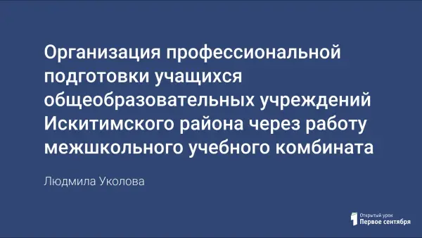 Профессиональная подготовка в общеобразовательных учреждениях включает: теоретическое и практическое обучение (в учебных, учебно-производственных мастерских), производственную практику (на учебно-производственной базе МУК), воспитательную работу (мероприятия профориентационной направленности).