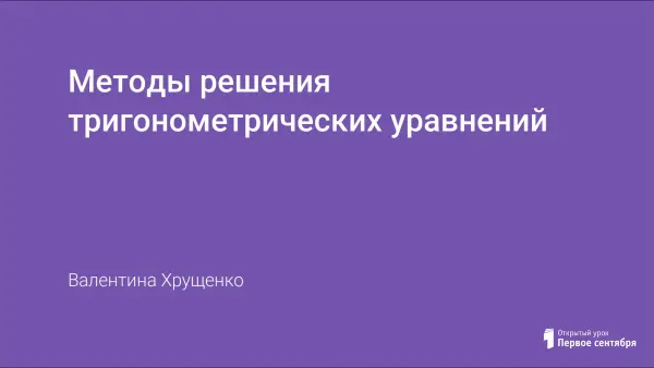 На уроке проверяются навыки решения простейших тригонометрических уравнений; рассматривается решение одного уравнения разными способами; происходит знакомство с более сложными уравнениями и нестандартными приемами решения. Основная часть урока отводится классификации уравнений по методам их решения. В конце урока проводится самостоятельная работа, анализируются оценочные листы и выставляются оценки. Домашнее задание дается дифференцированно.