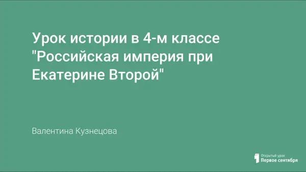 Цель занятия: формирование представления о Российской империи при Екатерине Второй.