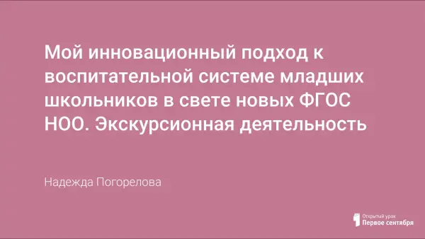 Мой инновационный проект посвящен воспитательной работе младших школьников. Содержанием моей воспитательной системы является урочная и внеурочная формы работы. Я хотела бы рассказать об одной из форм внеурочной деятельности – об экскурсионной. Приоритетной целью своей внеклассной работы я считаю знание своей Родины, своих истоков, своих народных традиций и промыслов.
