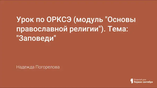 Главный этап – беседа о Десяти Заповедях Божьих. На уроке используются педагогические технологии: информационно-коммуникативная, технология развивающего обучения, обучение в сотрудничестве (групповая работа), технология индивидуального обучения, здоровьесберегающая технология.