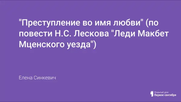 Урок продолжает знакомство десятиклассников с творчеством Н.С. Лескова. На примере повести «Леди Макбет Мценского уезда» в ходе урока обобщаются и систематизируются представления учащихся об основных темах и проблемах в произведениях Лескова (проблема русского национального характера, женской доли в русской литературе второй половины XIX века).