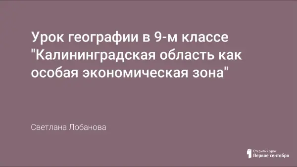 Цель данного занятия: познакомить с историей образования Калининградской области. Дать понятие о ОЭЗ и анклаве. Сформировать представление о специализации промышленности и сферы услуг. Показать проблемы области и возможные перспективы развития хозяйства.