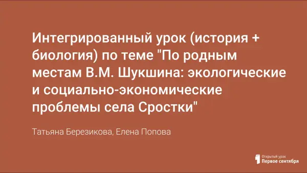 Интегрированный урок (история + биология) по теме "По родным местам В.М. Шукшина: экологические и социально-экономические проблемы села Сростки"