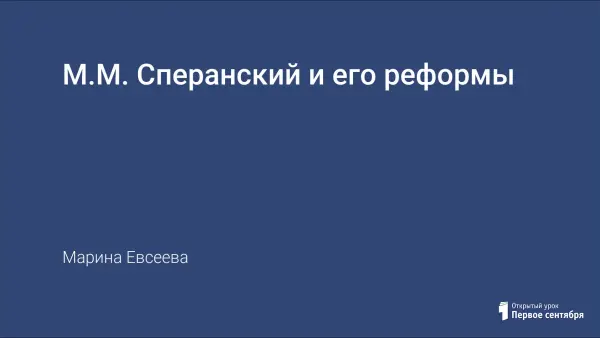 Урок проводится как лабораторно-практическая работа в группах. На основе самостоятельной работы с источниками у учащихся развиваются ключевые компетенции: коммуникативная, информационная, самообразования и самооценки. Для урока привлечен редкий материал из исторических монографий, писем и работ самого Сперанского с учетом уровневой дифференциации.