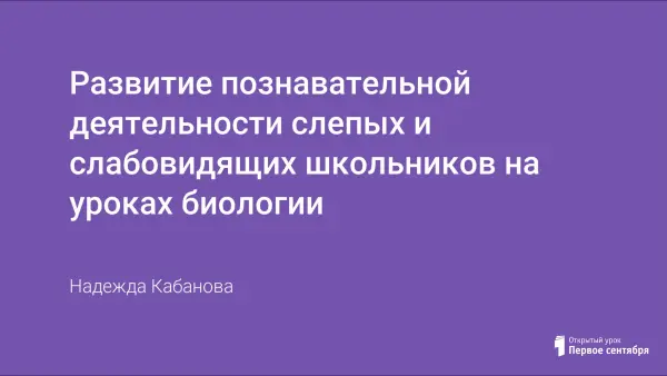 Автор делится опытом по развитию познавательной деятельности слепых и слабовидящих школьников на уроках биологии. Приводит примеры по использованию элементов модульного обучения незрячих, по составлению технологических карт, различных дидактических, раздаточных материалов.