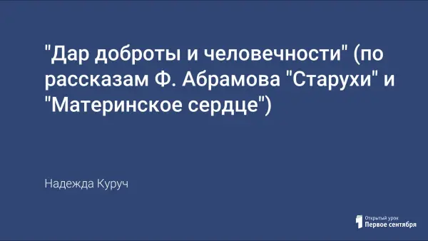 В данной работе дается анализ небольших рассказов Ф.А. Абрамова. Основная цель – помочь ребятам разобраться в исканиях автора, объяснить позицию писателя: почему «лучше на свете не жить, чем жить без совести», постараться возбудить интерес к творчеству Ф. Абрамова. Особое внимание уделить таким понятиям, как милосердие, доброта, человечность, честь, достоинство, бескорыстность.