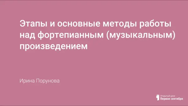 В учебной практике при работе над музыкальным произведением зачастую детализируется содержание основного центрального этапа (несомненно, самого емкого) и не достаточно уделяется внимания первому и последнему этапам. В статье мы остановимся на рассмотрении четырех этапов работы над музыкальным произведением: ознакомлении, работы над деталями, оформлении (то есть приспособлении и корректировки деталей) и подготовки пьесы к сценическому воплощению.