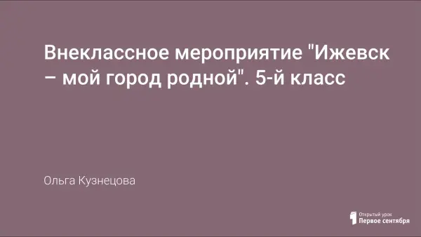 Урок позволяет познакомить учащихся 5-го класса с историей возникновения Ижевского оружейного завода, который положил начало будущему городу Ижевску. Значимой является возможность использовать материал урока для воспитания чувства гордости и уважения к истории родного города, родного края. Использование презентации усиливает воздействие на зрительную память обучающихся, на качество усвоения знаний, позволяет быстро закрепить новый материал.