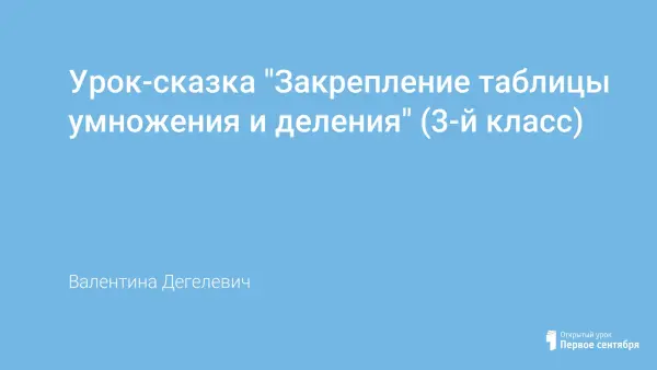 Особенностью урока математики является включение в учебный процесс «сказочного» сюжета, заданий игрового характера, использование информационных технологий (ИКТ). Материал сгруппирован так, что полное и прочное его усвоение учащимися происходит непосредственно на уроке. Все задания направлены на закрепление знаний таблицы умножения и деления.