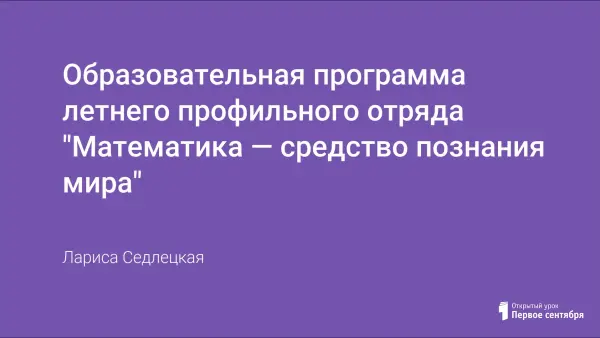 Одной из специфических форм является математический кружок. Перспективная форма работы во время летних каникул – профильный отряд. Практика внеклассной работы способствует развитию и становлению личности в условиях школы и повышает уровень обучения. Предлагаемая образовательная программа отряда представлена: пояснительной запиской, целями, задачами, формами и методами диагностики, тематическим планированием.