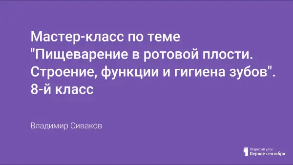 На мастер-классе освещены следующие темы: пищевые продукты, питательные вещества, содержание органических и минеральных веществ в организме человека, пищеварение, ротовая полость, роль слюны, строение пищеварительной системы человека и млекопитающих животных, дифференцировка зубов, зубы мудрости – рудименты, клыки – атавизмы, уход за зубами.