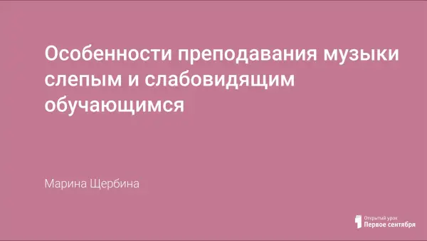 Учебный предмет «Музыка» играет особую роль в жизни слепых и слабовидящих учащихся. На каждом уроке проводится коррекционная работа, которая способствует более эффективному развитию ребенка, предупреждению вторичных отклонений: происходит уточнение и формирование представлений о предметах и явлениях, развитие зрительного восприятия, произвольной памяти, речи, коммуникативных навыков обучающихся. Информация, которая даётся на уроках музыки, расширяет кругозор незрячих школьников, способствует обогащению их знаний об окружающем мире и формированию жизненного опыта. Работа в коллективе, группе, микрогруппе (паре) дает обучающимся со зрительной депривацией необходимый опыт социального общения.