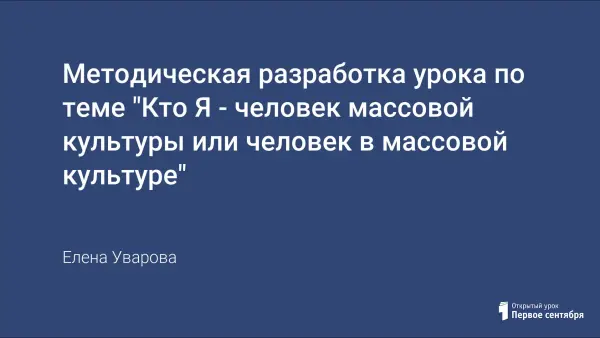 Представлен конспект урока по дисциплине «Основы культурологии». Урок помогает определить и оценить влияние массовой культуры на современное общество и современных студентов.