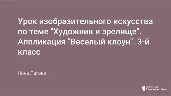 Тип урока – творческая мастерская. Вид работы: индивидуальный и коллективный. Выбор содержания урока определяется программным содержанием, в соответствии с программой Б.М. Неменского. Расширяет представление детей о синтетических зрелищных искусствах и роли трех братьев мастеров. Учащиеся учатся работать в технике аппликации, создавая образ веселого клоуна.