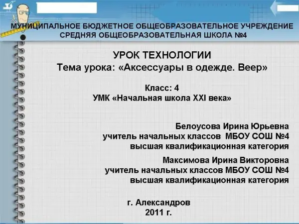 Урок технологии по теме "Аксессуары в одежде. Веер"