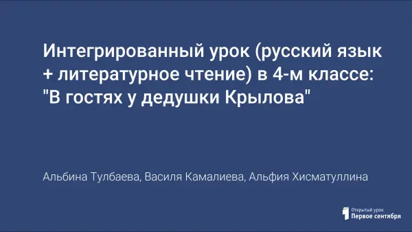 Интегрированный урок (русский язык + литературное чтение) в 4-м классе: "В гостях у дедушки Крылова"