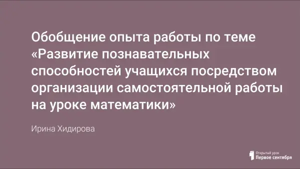 Цель любой самостоятельной работы – совершенствование знаний и умений. Эта работа выполняет, как правило, функцию закрепления нового материала. Однако закрепление бывает разное: воспроизводящее, тренировочное и творческое.