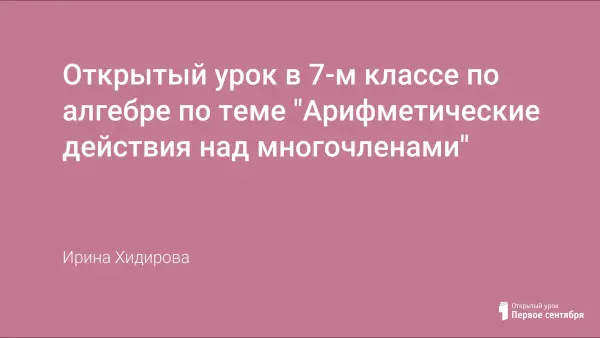 Цели урока: обобщение и систематизация знаний, умений, навыков учащихся при выполнении арифметических действий над многочленами; организовать работу класса по закреплению темы «Умножение одночлена на многочлен»; повторение понятий одночлен и его стандартный вид, многочлен и его стандартный вид; применение алгоритма умножения одночлена на многочлен на практике.