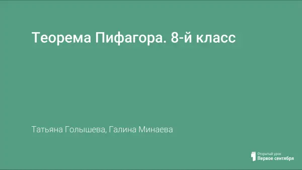 Урок геометрии в 8-м классе является уроком изучения нового материала, на котором учащиеся знакомятся с теоремой Пифагора, ее ролью в геометрии; учатся использовать теорему при решении задач. Урок нацелен на развитие интеллектуальных навыков, познавательного интереса, логического мышления, внимания, наблюдательности; формирование умения анализировать и оценивать свои знания; воспитание устойчивого интереса к предмету.