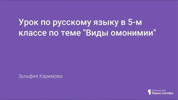 Урок по русскому языку в 5-м классе по теме "Виды омонимии"