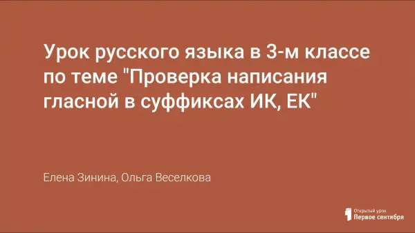Урок русского языка в 3-м классе по теме "Проверка написания гласной в суффиксах ИК, ЕК"