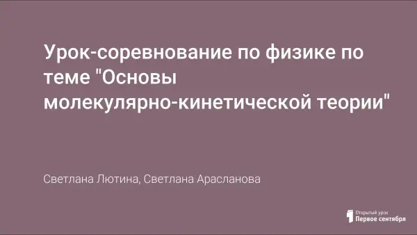 Урок-соревнование по физике по теме "Основы молекулярно-кинетической теории"