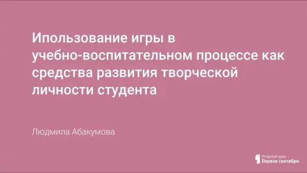 Задача развития творческих способностей основной массы студентов является социальным заказом общества, что обуславливает перенос акцента с передачи учащимся преимущественно готовых предметно-дисциплинарных знаний на организацию их совместной активной познавательной деятельности в учебе и труде. Предлагаемый опыт направлен на обеспечение развития творческой личности студентов при помощи деловых и познавательных игр.