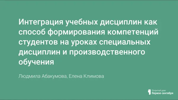 Интеграция учебных дисциплин как способ формирования компетенций студентов на уроках специальных дисциплин и производственного обучения