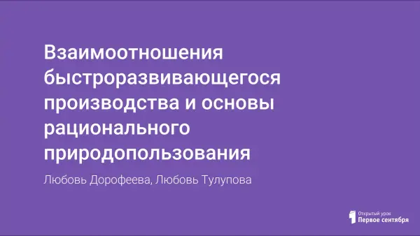 Взаимоотношения быстроразвивающегося производства и основы рационального природопользования