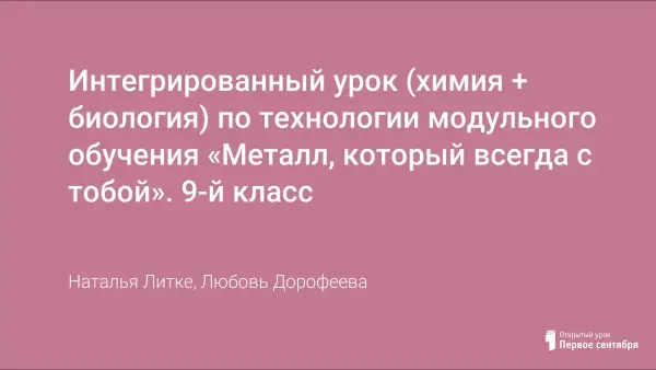 Интегрированный урок (химия + биология) по технологии модульного обучения «Металл, который всегда с тобой». 9-й класс