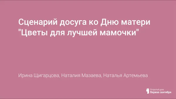 Цель занятия: воспитание коммуникативных, социально-нравственных качеств у детей; установление дружеских отношений между родителями и детьми группы, развитие творческого сотрудничества; создание доброжелательной атмосферы эмоционального общения посредством включения детей и родителей в совместную деятельность; формирование у детей артистических навыков через использование речевых средств выразительности; создать праздничное настроение у детей и мам.