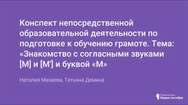 Цель занятия: познакомить детей с согласными звуками [М] и [М'] и буквой (М).