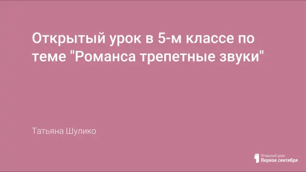 Урок проводится для учащихся 5-го класса по программе «Музыка» под редакцией Алеева В., Науменко Т. в разделе «Музыка и литература». Материал урока помогает познакомить ребят с удивительным жанром музыкального искусства – романсом. Совершенствует умение слушать и анализировать музыкальные произведения, развивает певческие навыки.
