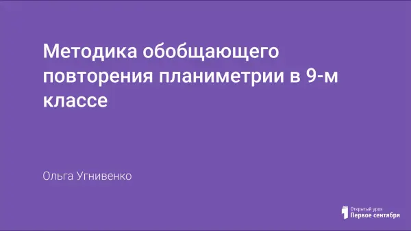 Удачно спланированное и правильно организованное повторение по геометрии является хорошей подготовкой учащихся к экзаменам. С этой целью часы, отведенные на повторение, я распределяю следующим образом: уроки-лекции – 4 часа, остальное время посвящается решению задач по всем разделам, таким как "Треугольники", Четырехугольники", "Круг, окружность". На этих уроках я стараюсь показать, как в комплексе применяется аппарат геометрии к решению планиметрических задач.