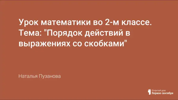 Урок составлен по программе "Школа-21". Он проводится во втором полугодии 2-го класса. На уроке уточняется общее правило порядка действий в выражениях со скобками, используется интегративная технология деятельного подхода.