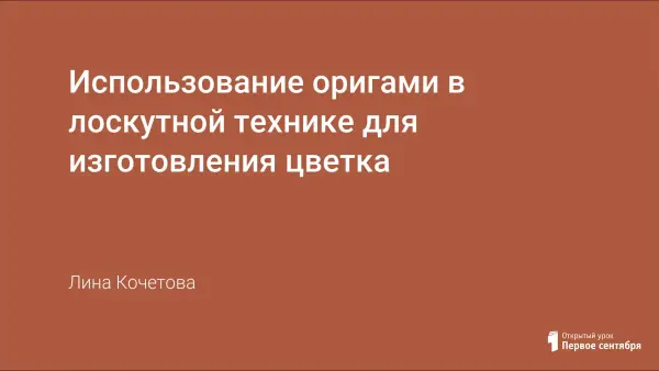 Применение оригами в лоскутной технике позволяет совместить в одном изделии лоскутную технику, вышивку, аппликацию и оригами. Используя их в комбинации, можно получить необычно эффектные вещи, пластика и податливость ткани совмещается с объемом и формой, дополненной изяществом линий и цвета.