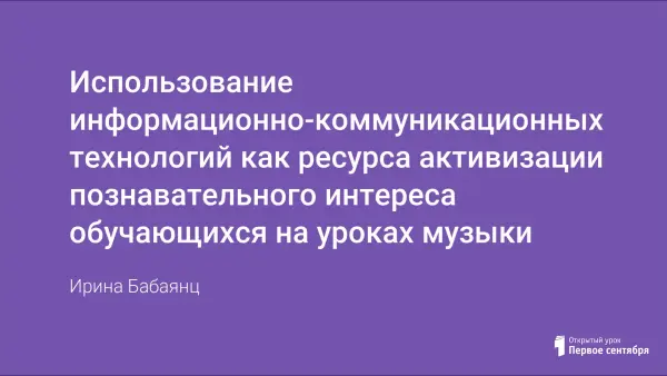 Проникновение современных технологий в образовательную практику, в том числе и на уроки музыки, открывает новые возможности. В этом случае, учителю необходимо сделать информационно-коммуникационные технологии новым средством эстетического развития учащихся.