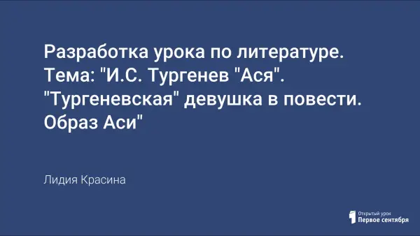 На уроке продолжается разговор о повести, ведется работа на углубление знаний учащихся об образе главной героини повести. Учащимся предлагается разгадать тайну Аси и её брата, которая поможет понять «странное» поведение девушки. В ходе урока учащиеся знакомятся с понятиями "психологический портрет" и «тургеневская девушка» и определяют, что характерно для этого литературного типа.